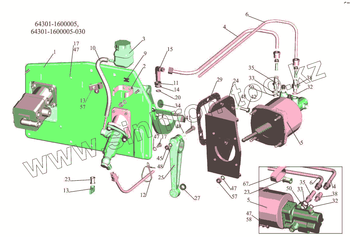 Каталог запасных частей к технике: МАЗ-650108. Установка механизма управления сцеплением