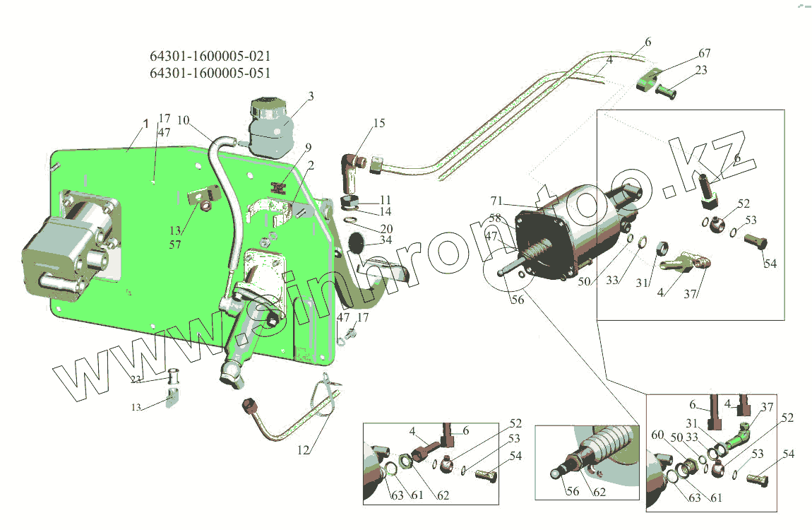 Каталог запасных частей к технике: МАЗ-650108. Установка механизма управления сцеплением
