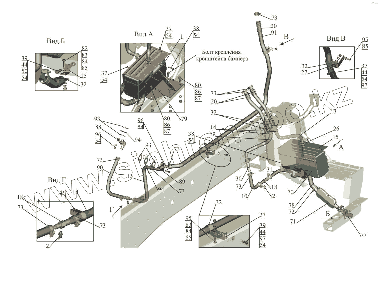 Каталог запасных частей к технике: МАЗ-650108. Установка подогревателя