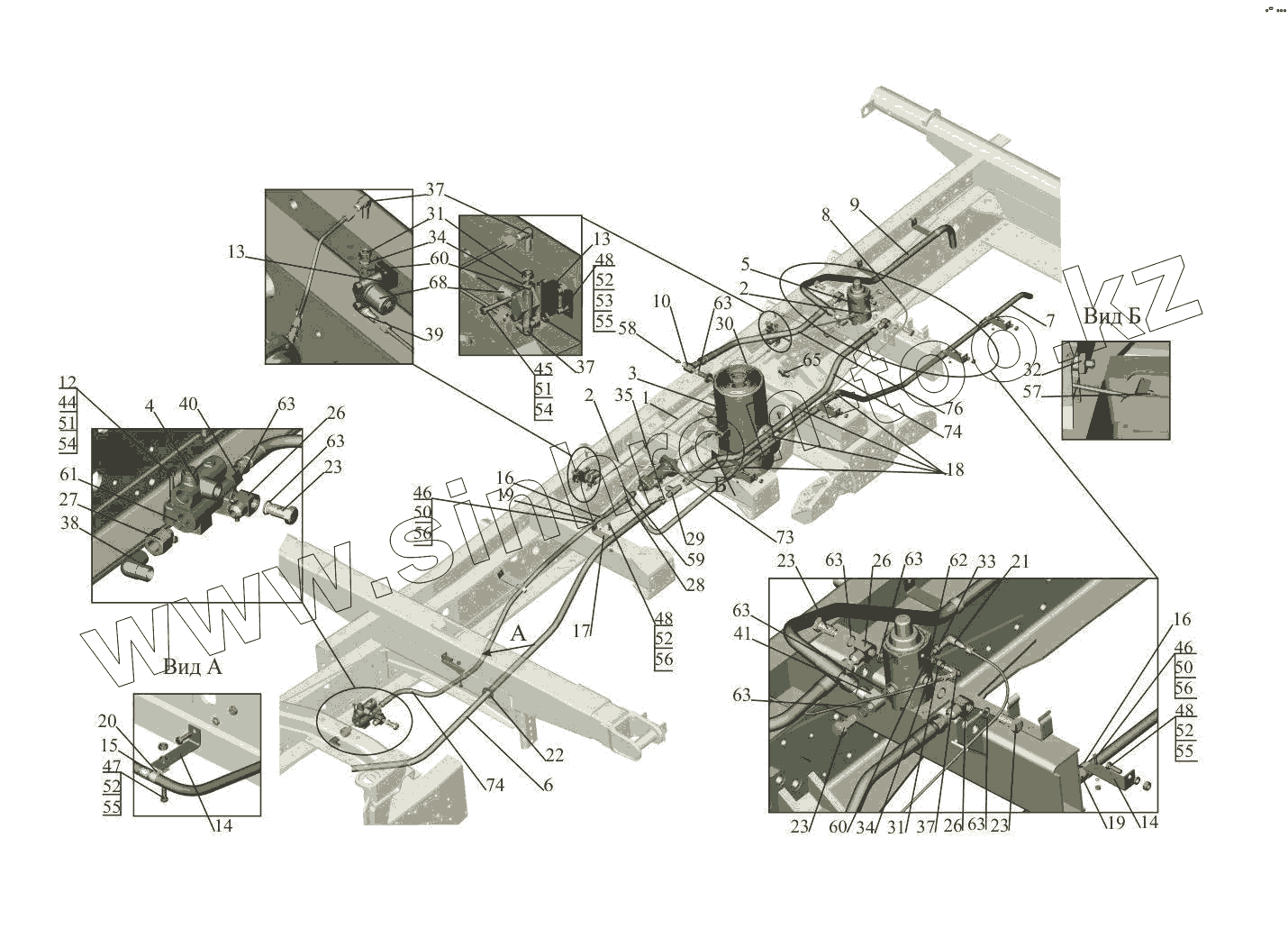 Каталог запасных частей к технике: МАЗ-650108. Установка цилиндра и клапана