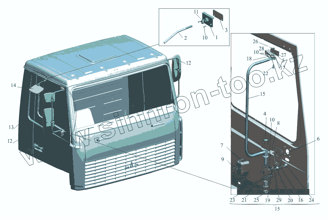 Каталог запасных частей к технике: МАЗ-650108. Установка зеркал 6430-8200005