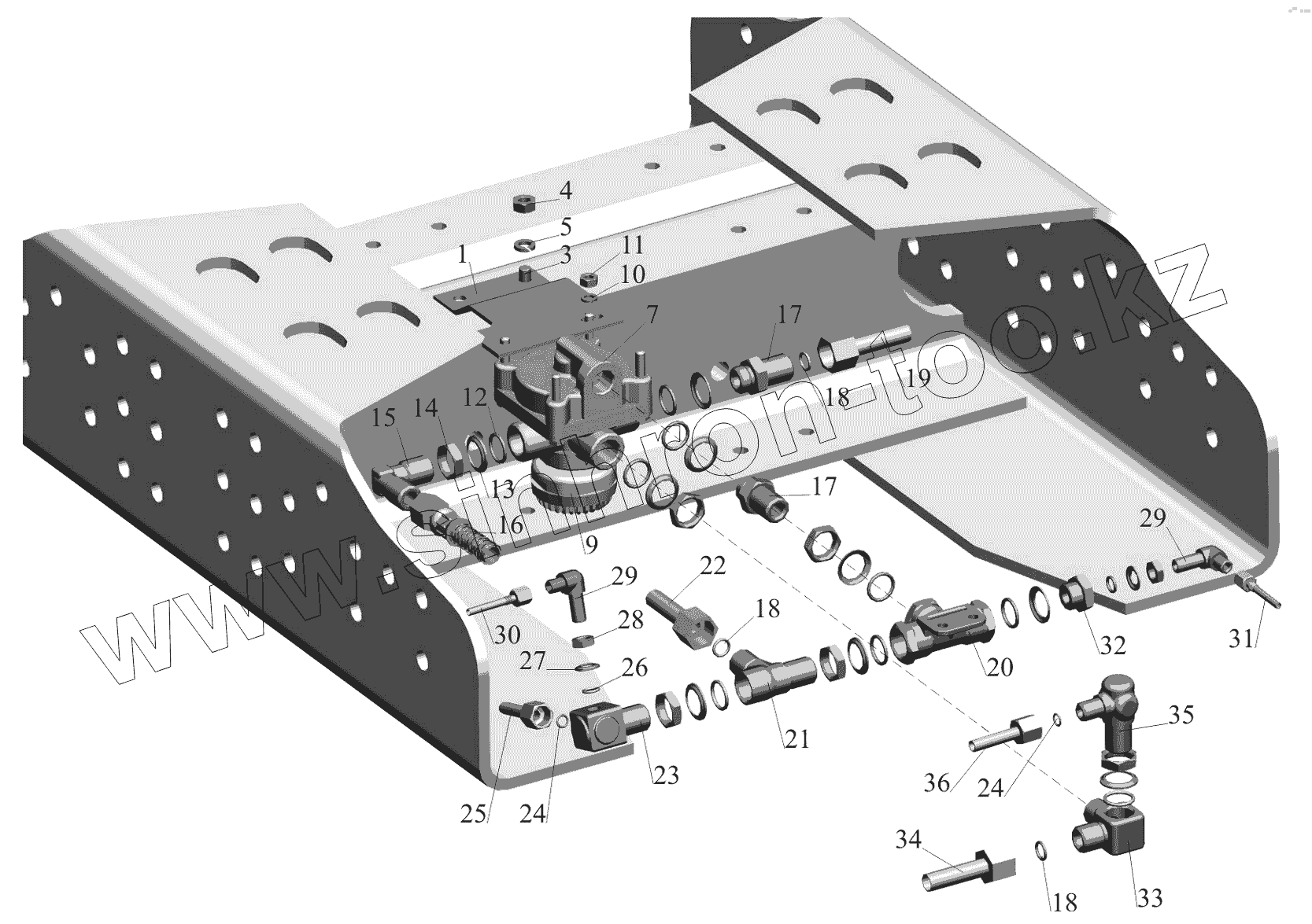 Каталог запасных частей к технике: МАЗ-650119. Крепление клапана ускорительного 650136-3518004