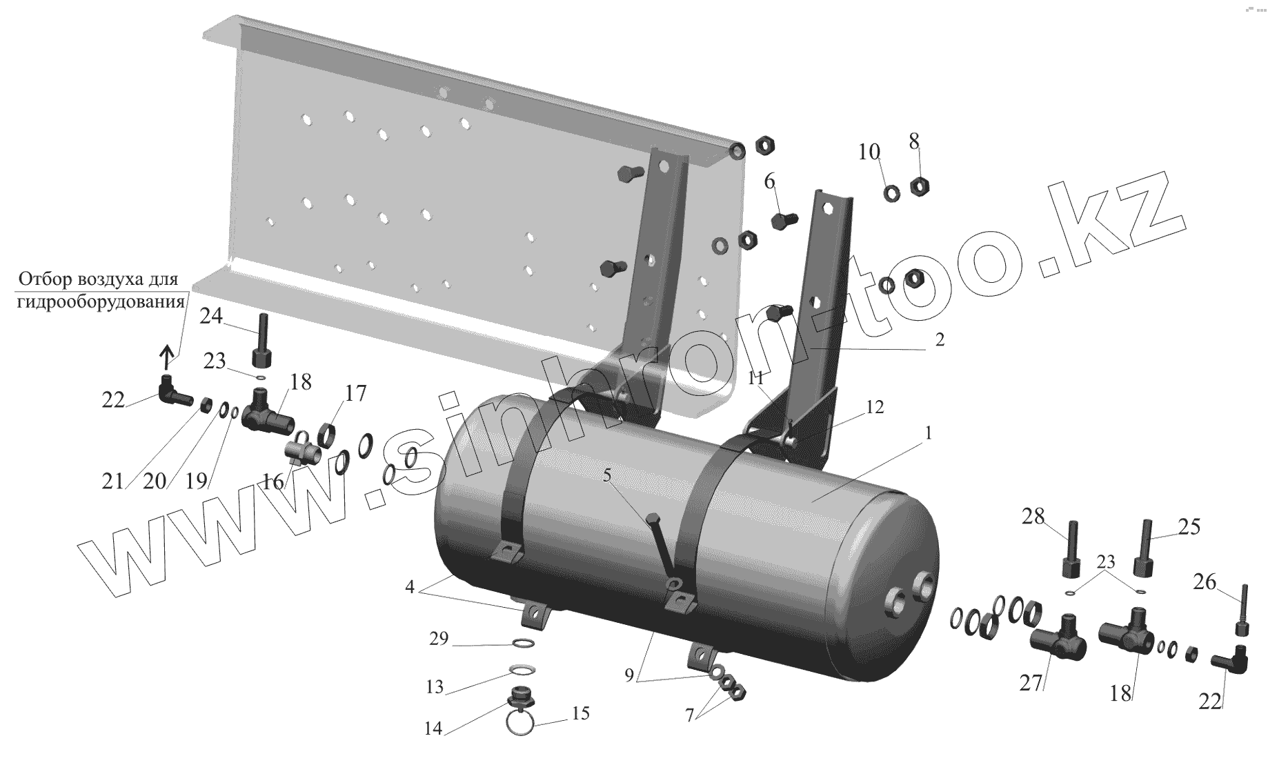 Каталог запасных частей к технике: МАЗ-650119. Крепление ресивера и присоединительной арматуры 650107-3513005