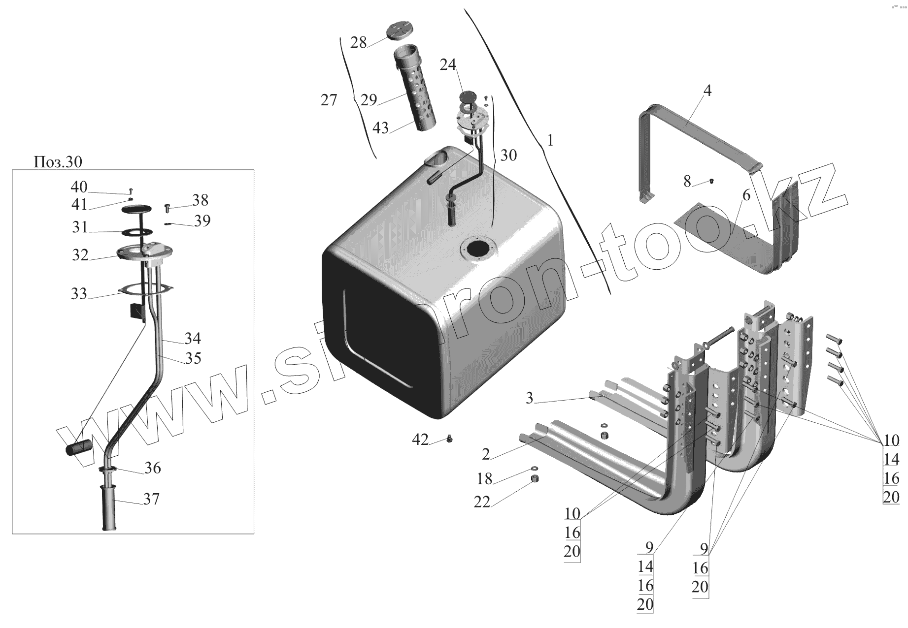 Каталог запасных частей к технике: МАЗ-650119. Крепление топливного бака 650119-1101002