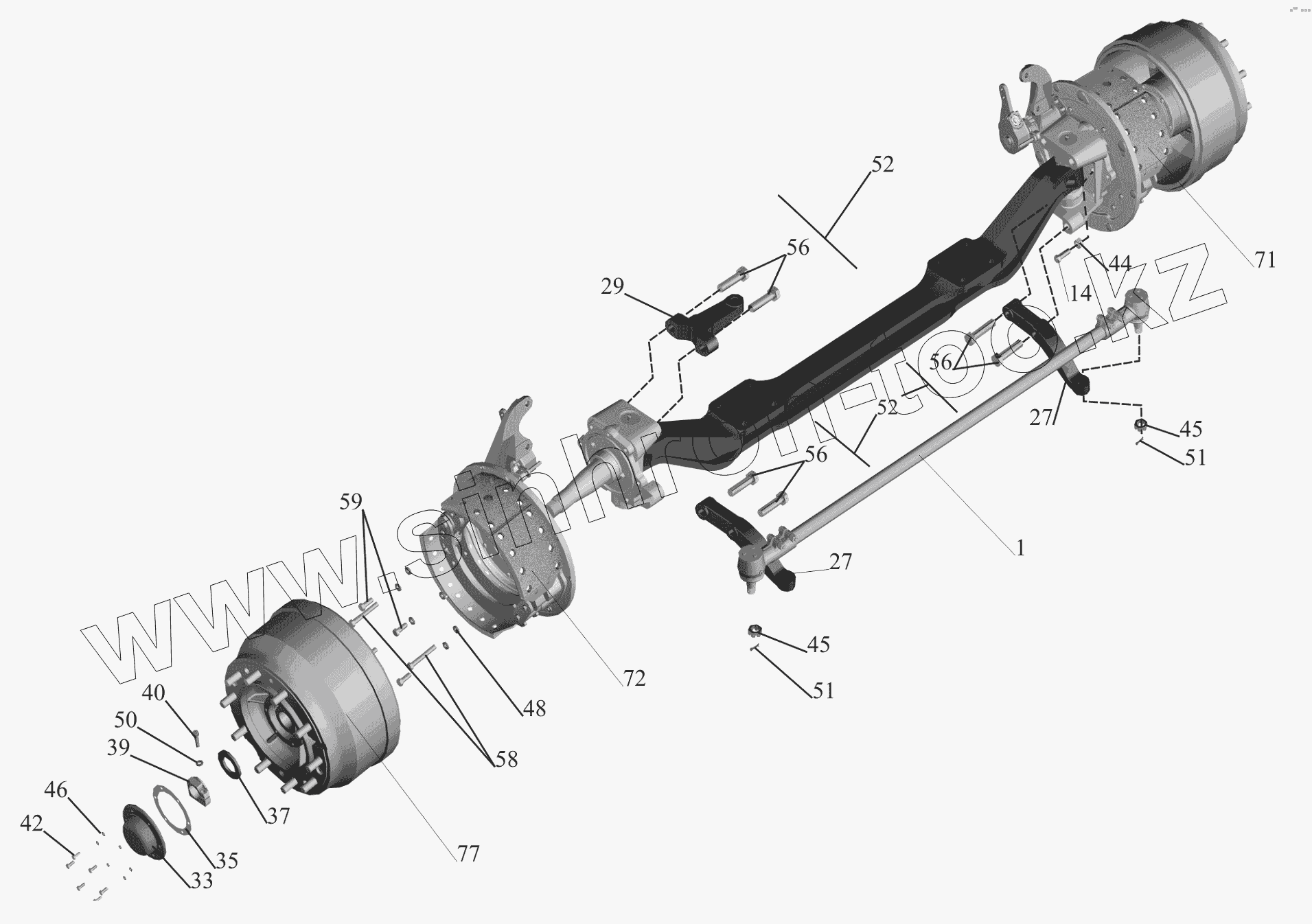 Каталог запасных частей к технике: МАЗ-650119. Передняя ось 6430-3000015-001