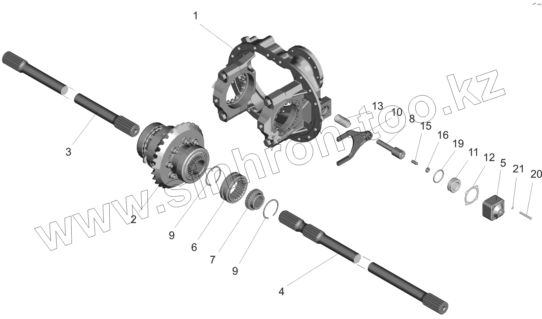 Каталог запасных частей к технике: МАЗ-650119. Редуктор среднего моста. Межколесная блокировка дифференциала