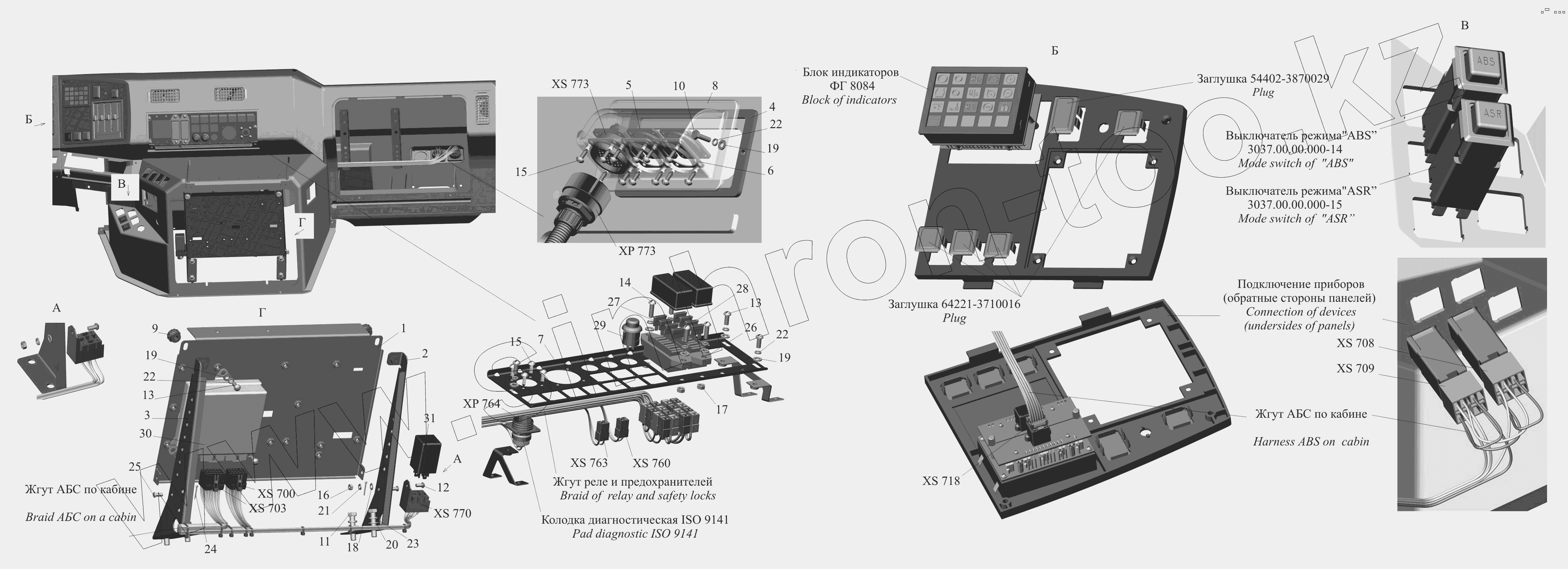 Каталог запасных частей к технике: МАЗ-650119. Установка АБС по кабине 544019-3700120-010