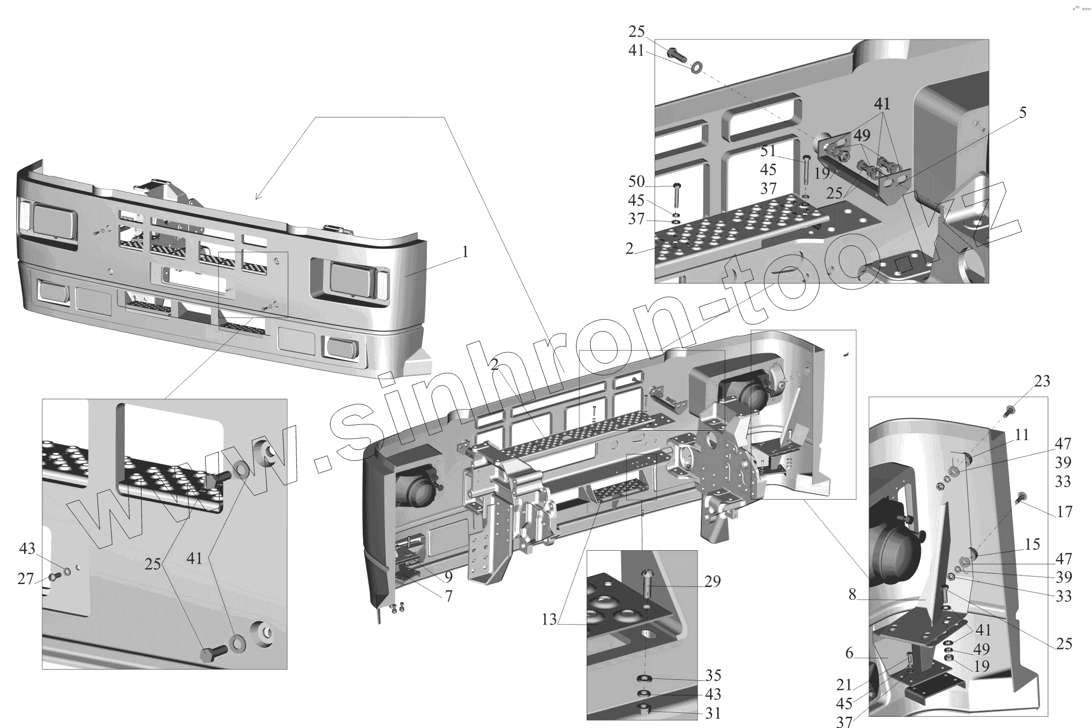 Каталог запасных частей к технике: МАЗ-650119. Установка бампера и фар 544019-2803006
