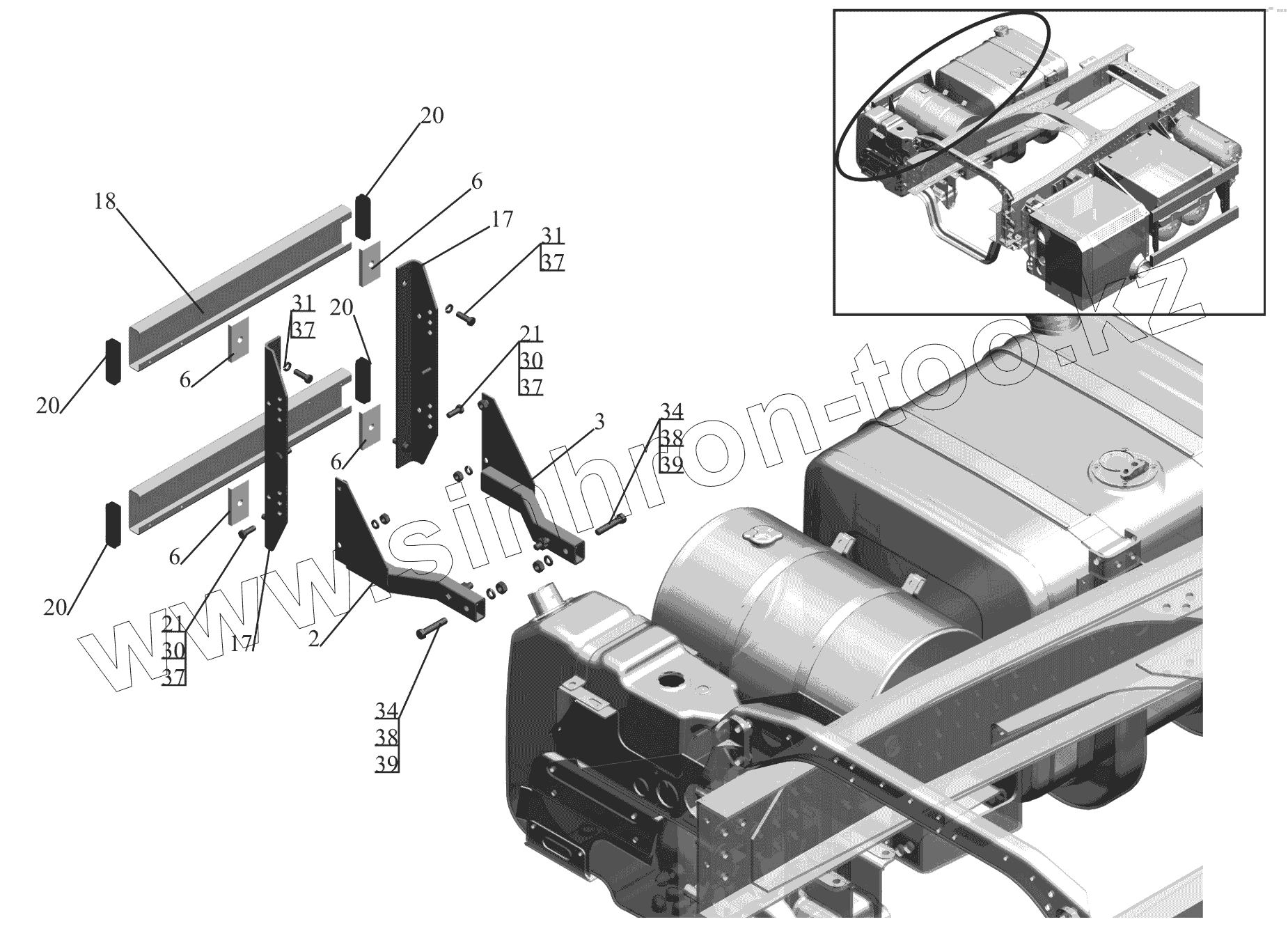 Каталог запасных частей к технике: МАЗ-650119. Установка бокового ограждения 650119-2800040