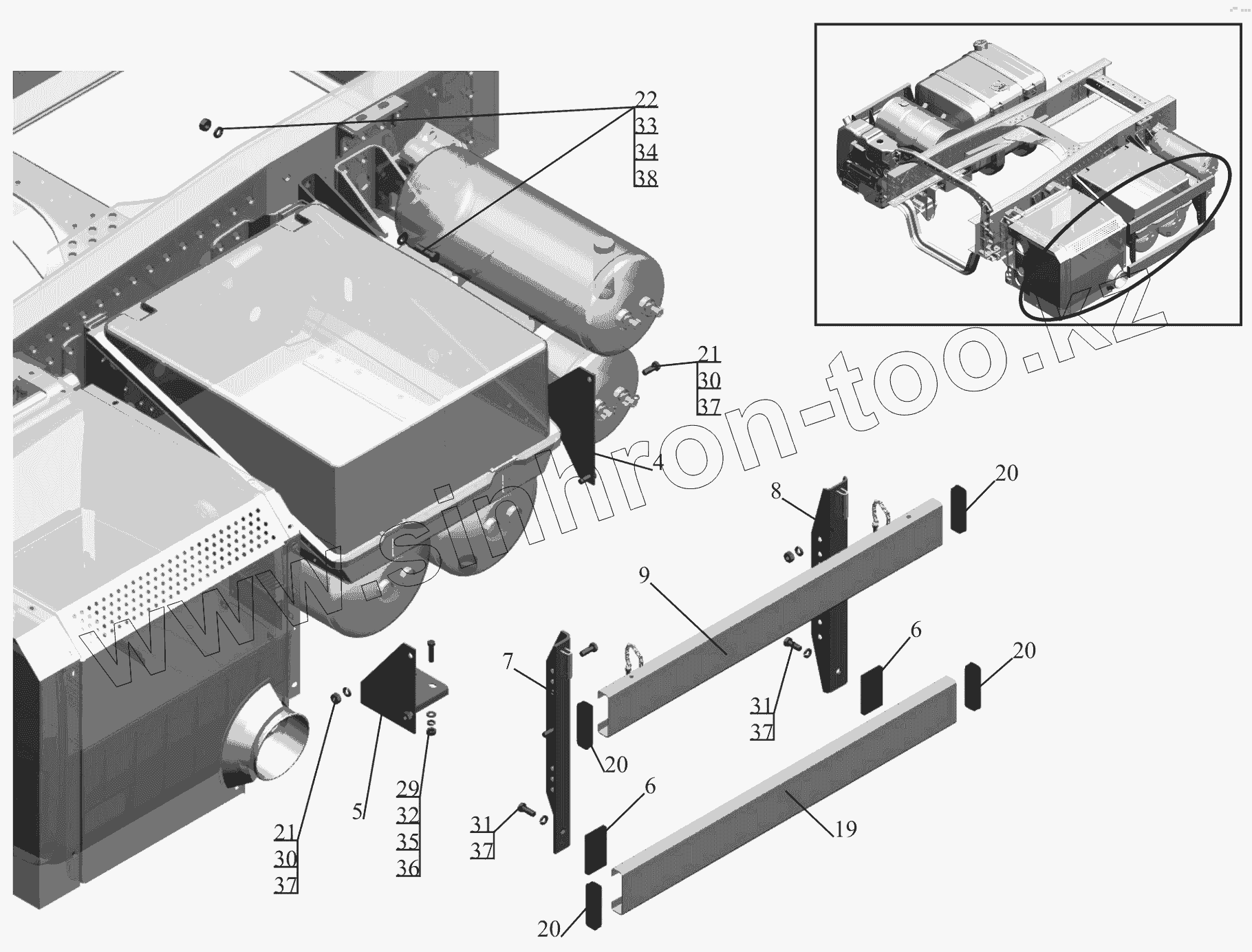 Каталог запасных частей к технике: МАЗ-650119. Установка бокового ограждения 650119-2800040