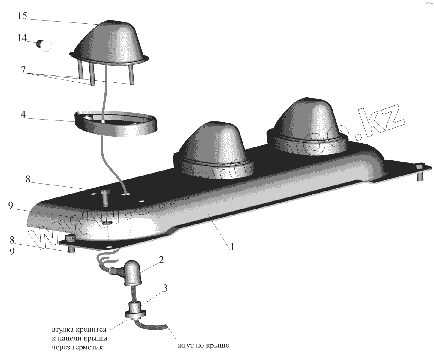 Каталог запасных частей к технике: МАЗ-650119. Установка фонарей автопоезда 6501-3700099-001