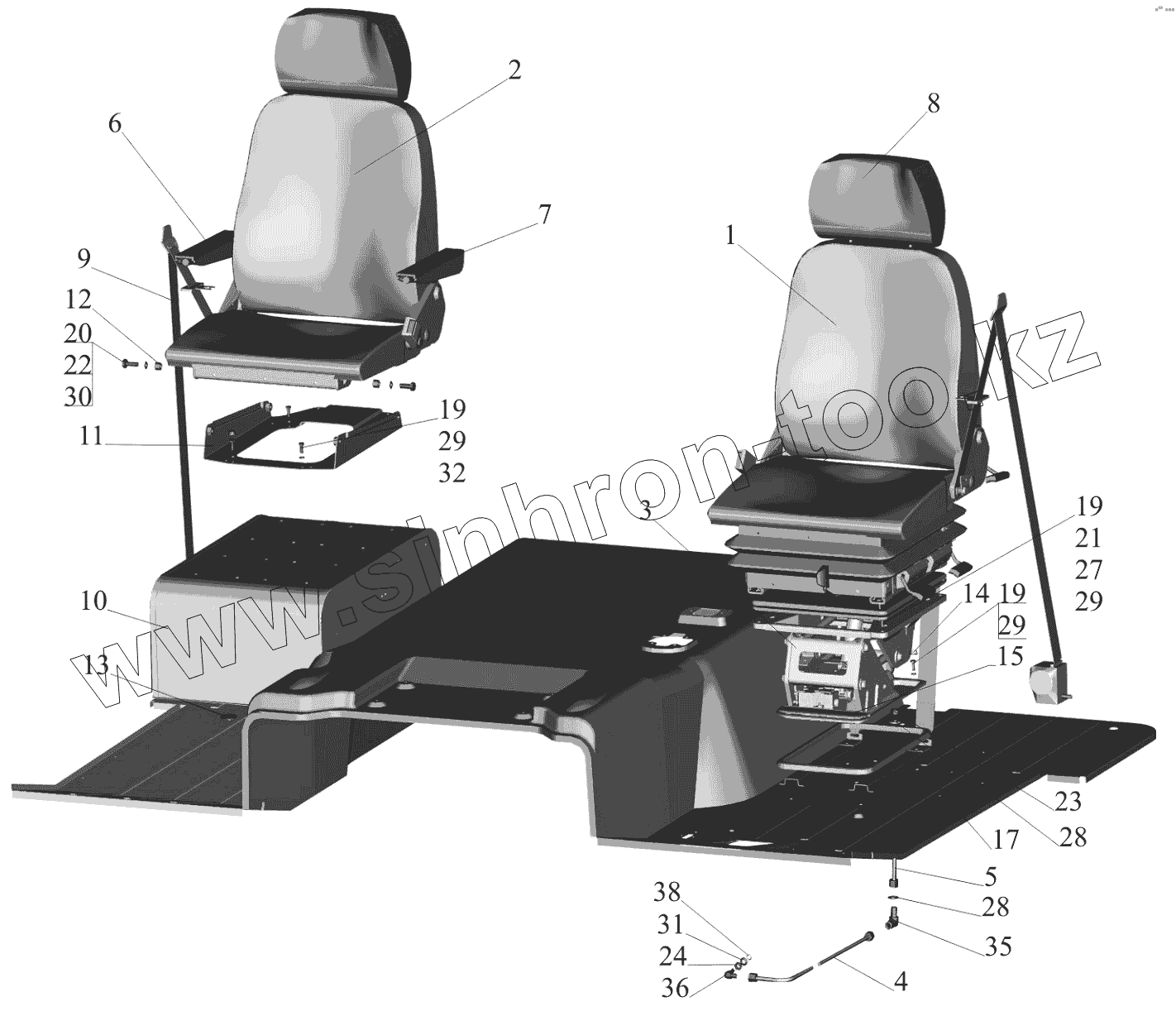 Каталог запасных частей к технике: МАЗ-650119. Установка и пневмопитание сидений 544003-6800006