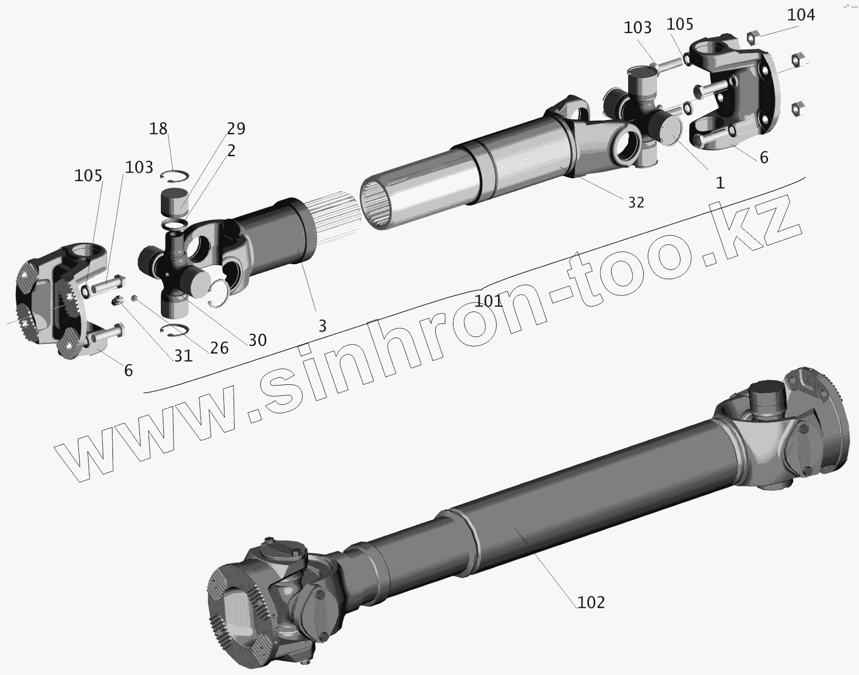 Карданный вал в сборе привода среднего моста с подшипниками импортного пр-ва