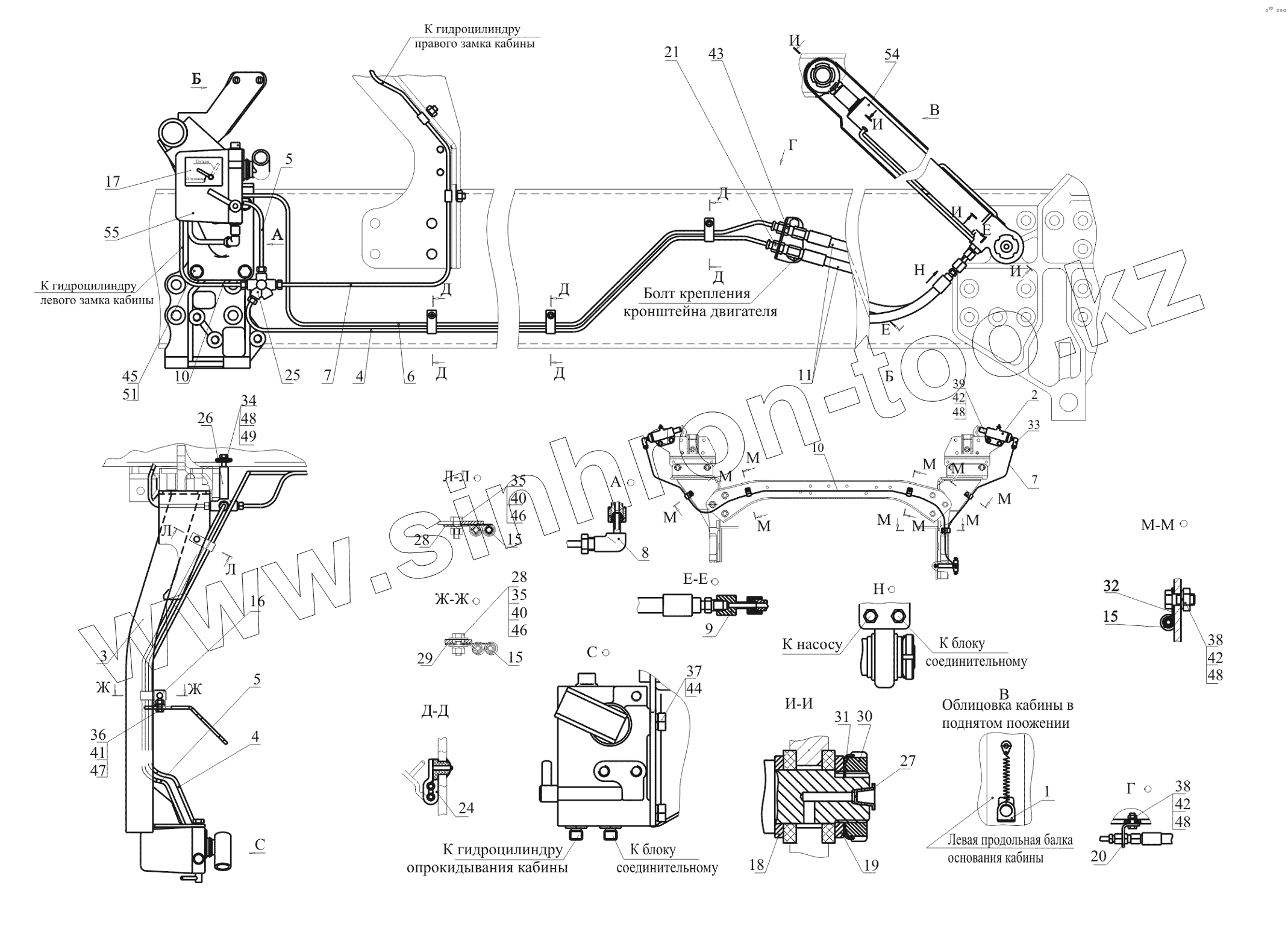 Каталог запасных частей к технике: МАЗ-650119. Установка механизма подъема кабины 650119-5000040-010