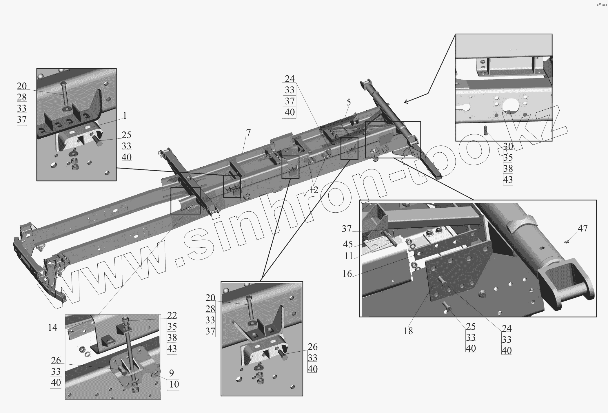 Каталог запасных частей к технике: МАЗ-650119. Установка надрамника 650119-8600002