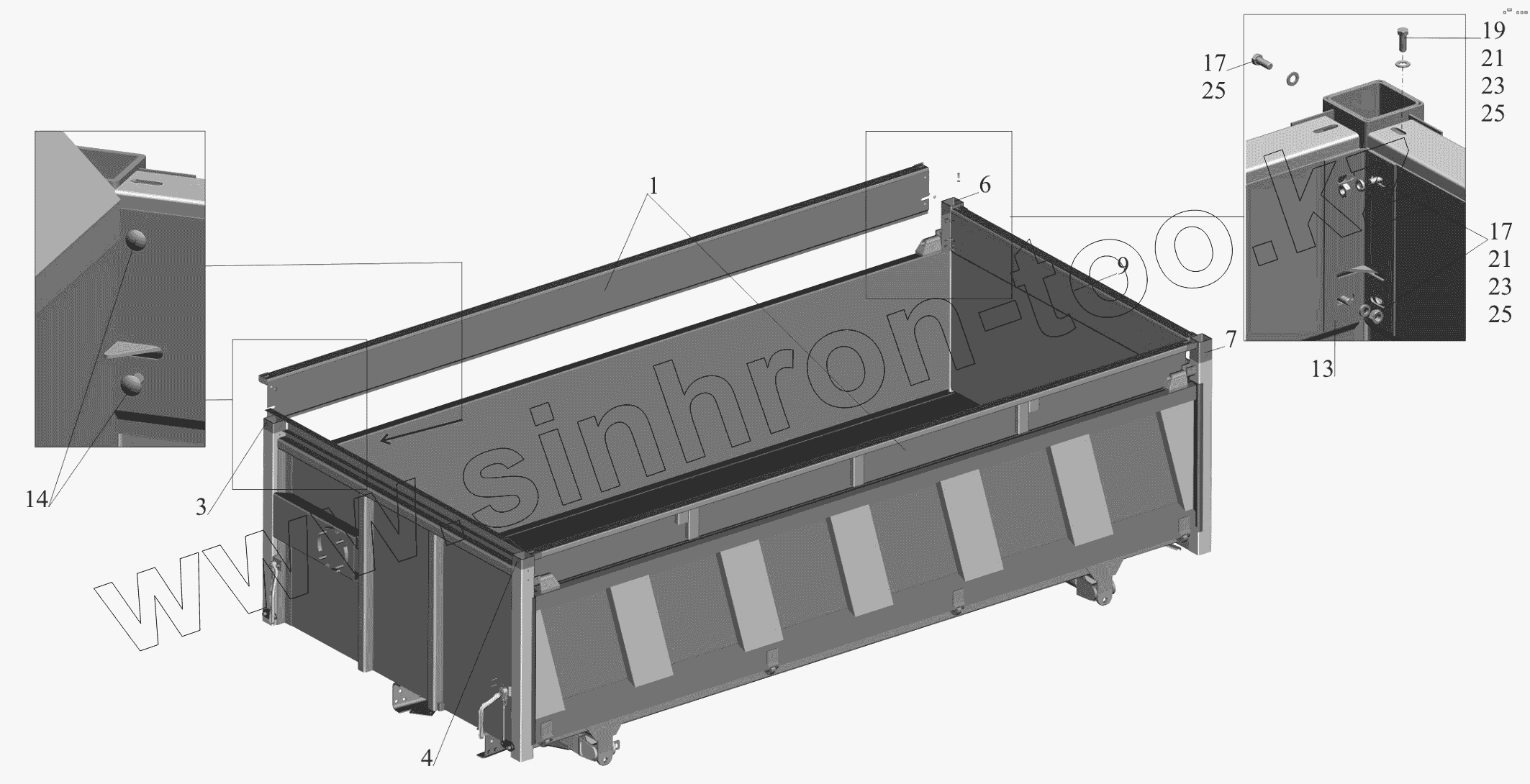 Каталог запасных частей к технике: МАЗ-650119. Установка надставных бортов 650108-8500012