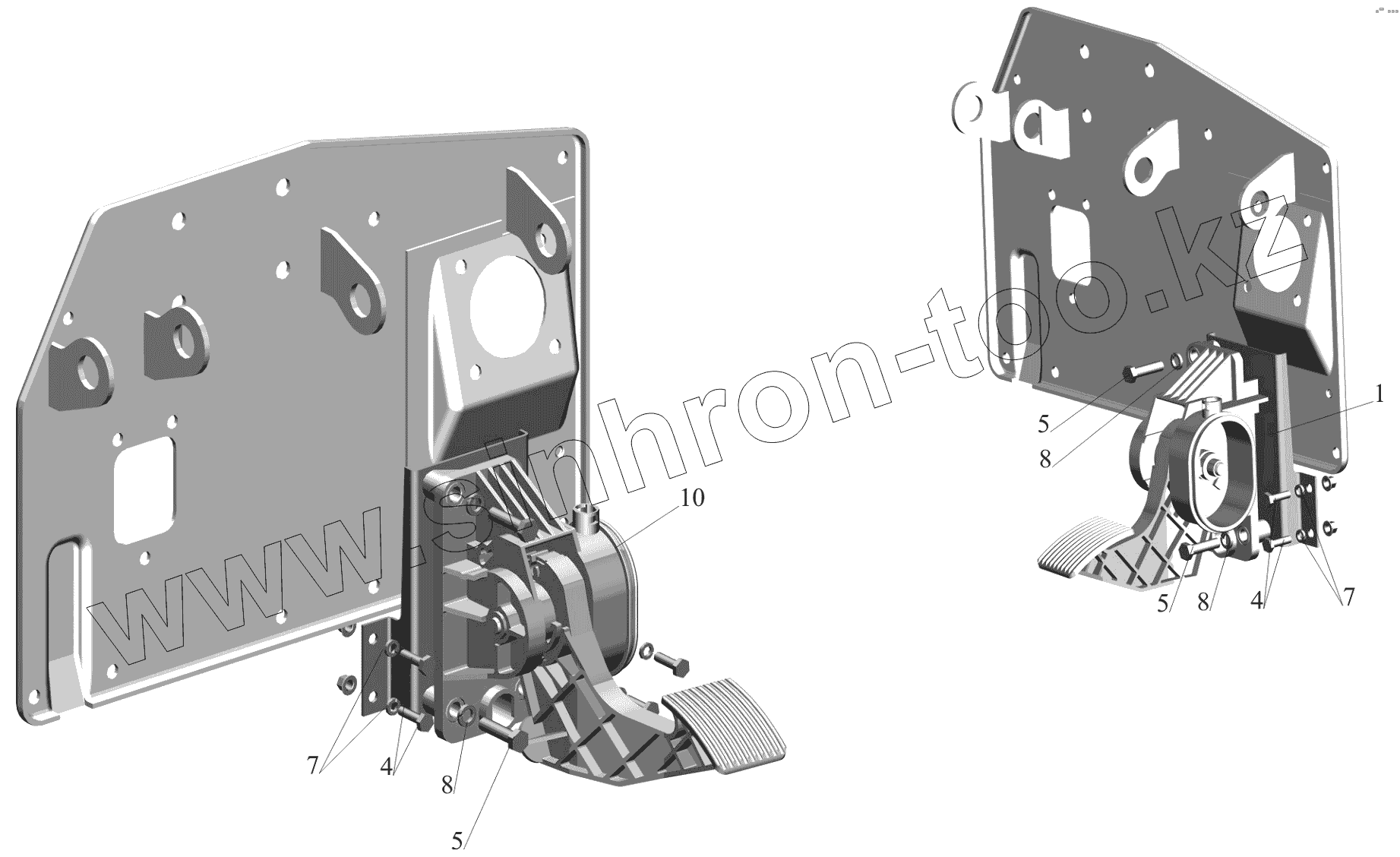 Каталог запасных частей к технике: МАЗ-650119. Установка педали управления двигателем 544019-1108002-010