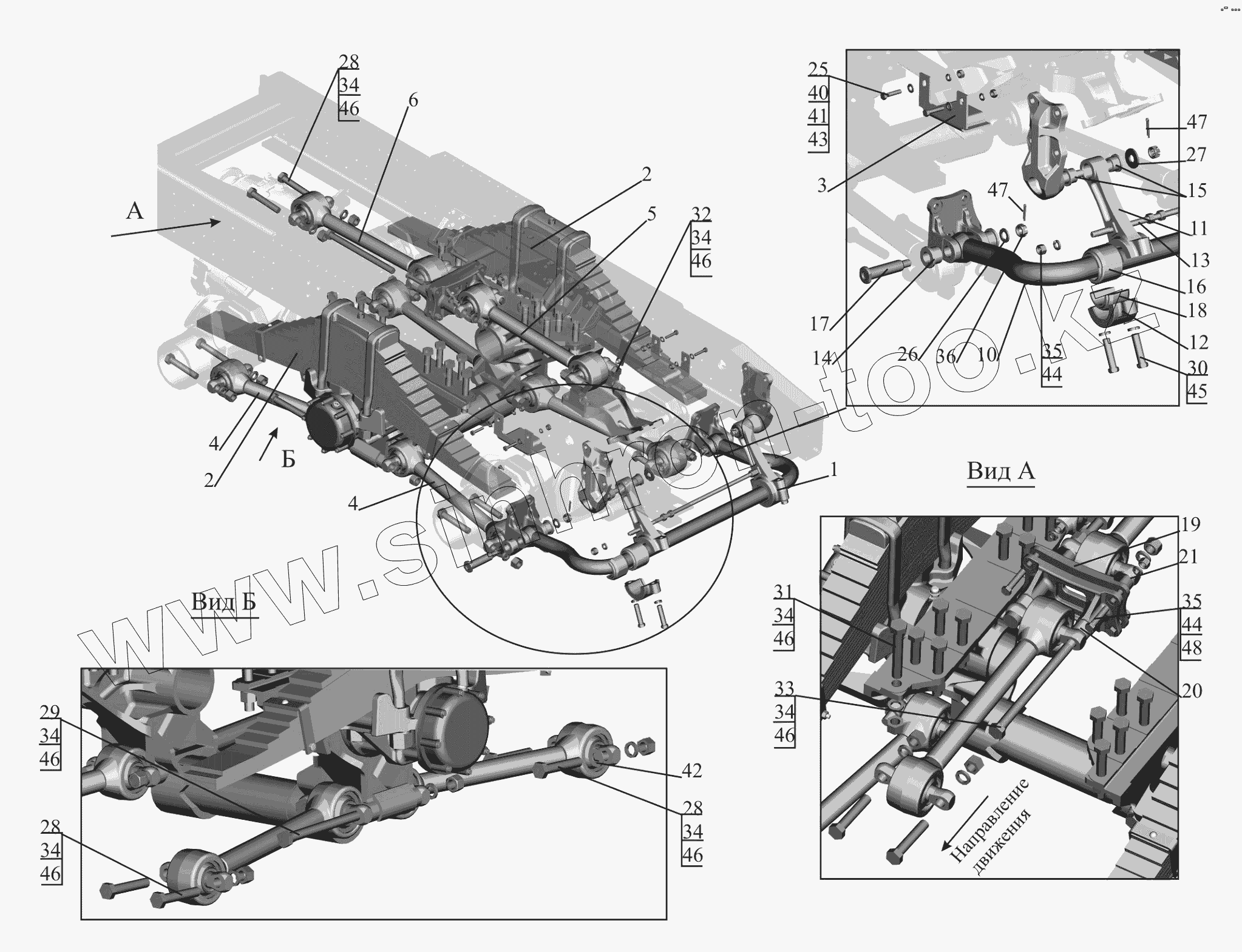 Каталог запасных частей к технике: МАЗ-650119. Установка подвески задней 650119-2900002