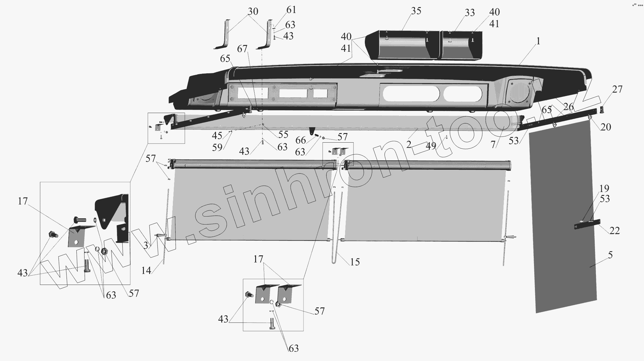 Каталог запасных частей к технике: МАЗ-650119. Установка полки и штор 6501-8200034