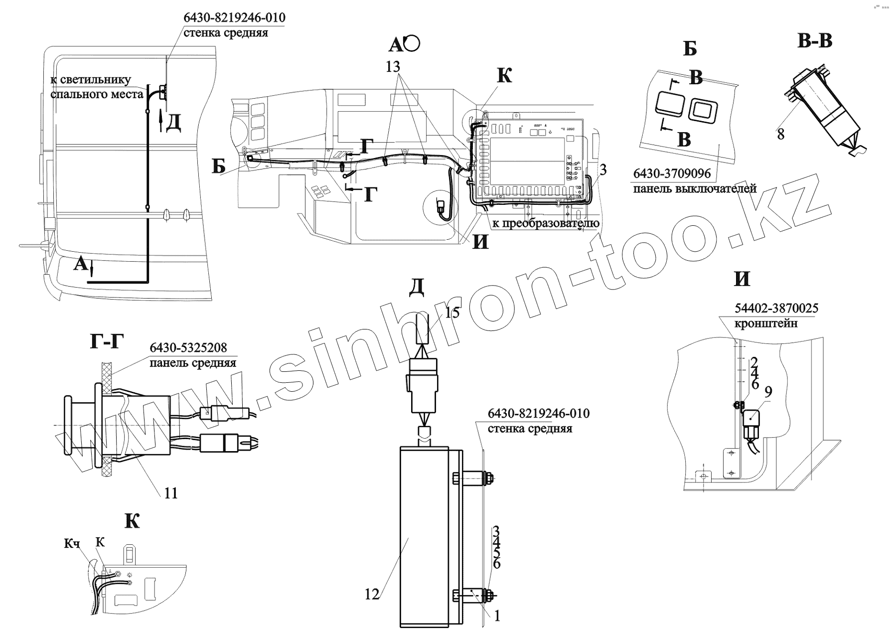 Каталог запасных частей к технике: МАЗ-650119. Установка преобразователя напряжения 6430-3700109