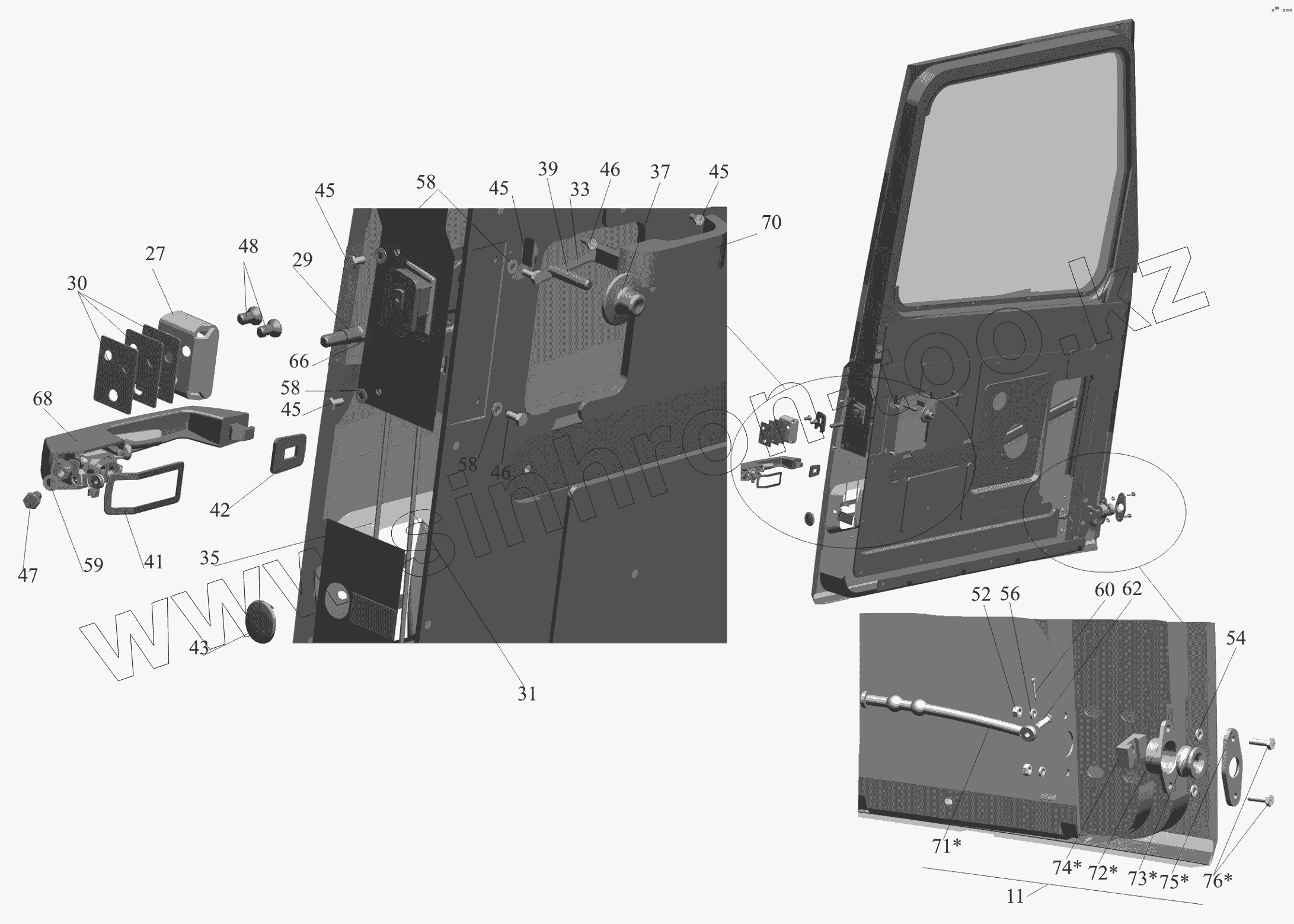 Каталог запасных частей к технике: МАЗ-650119. Установка ручек, замка и ограничителя двери