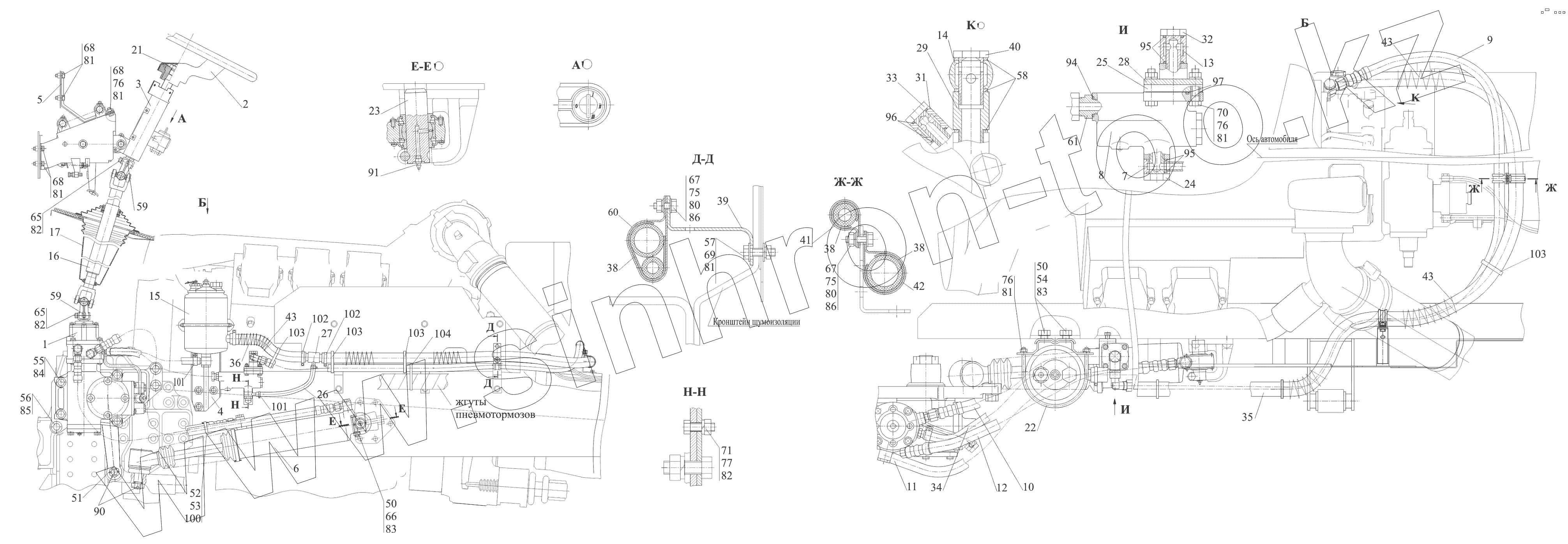 Каталог запасных частей к технике: МАЗ-650119. Установка рулевого управления 544019-3400001