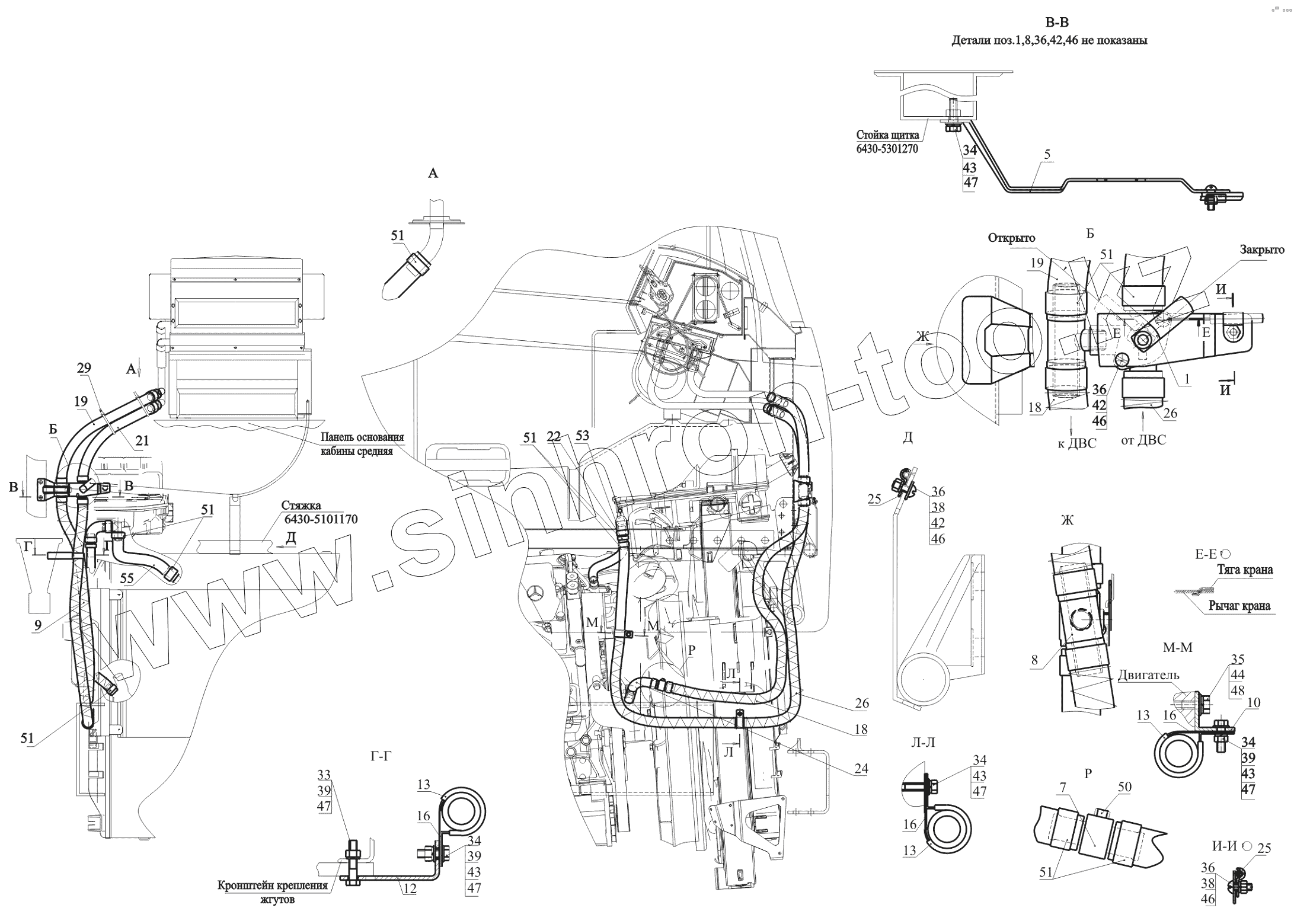 Каталог запасных частей к технике: МАЗ-650119. Установка шлангов отопителя 544019-8100006