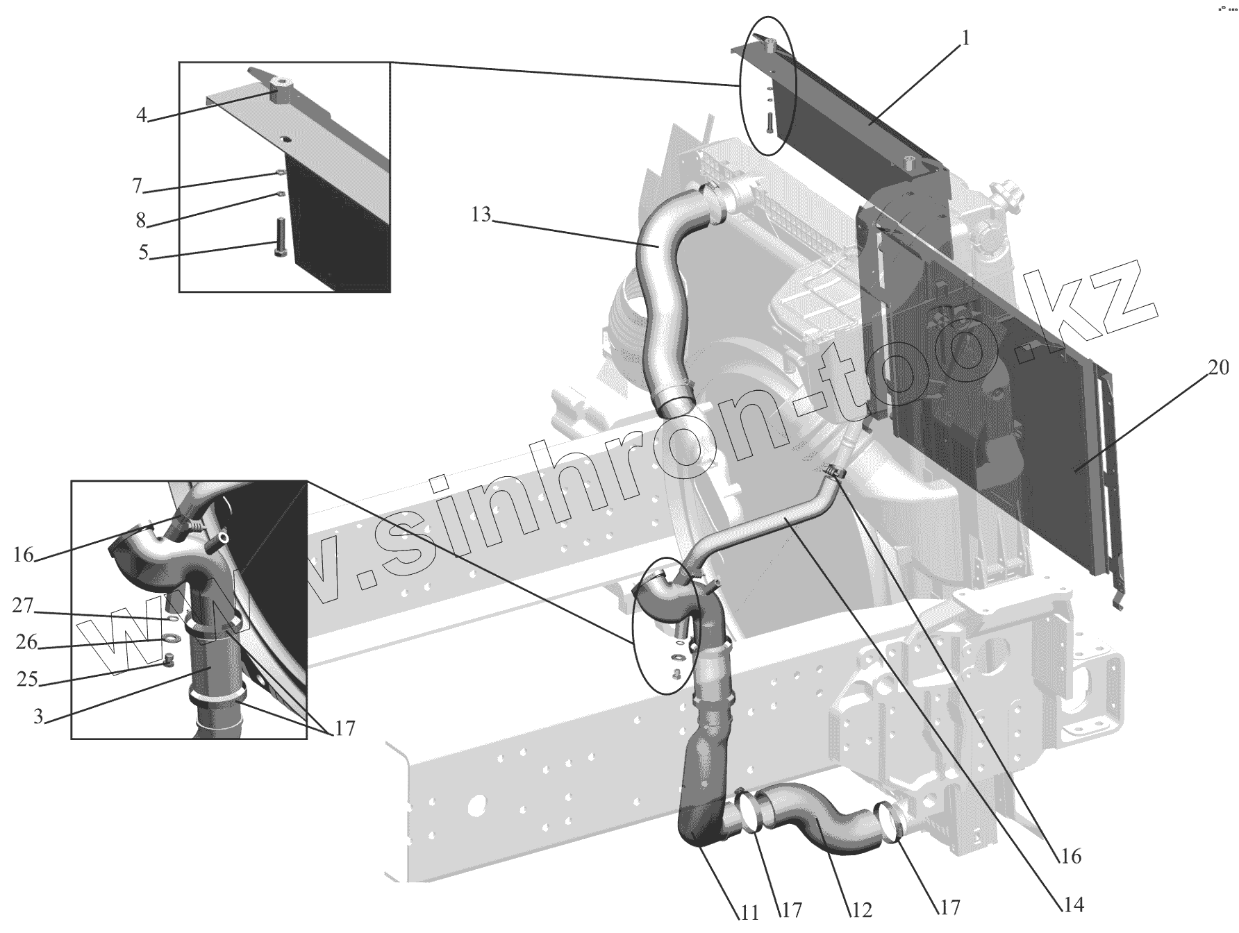 Каталог запасных частей к технике: МАЗ-650119. Установка системы охлаждения 544019-1300005, (-010)