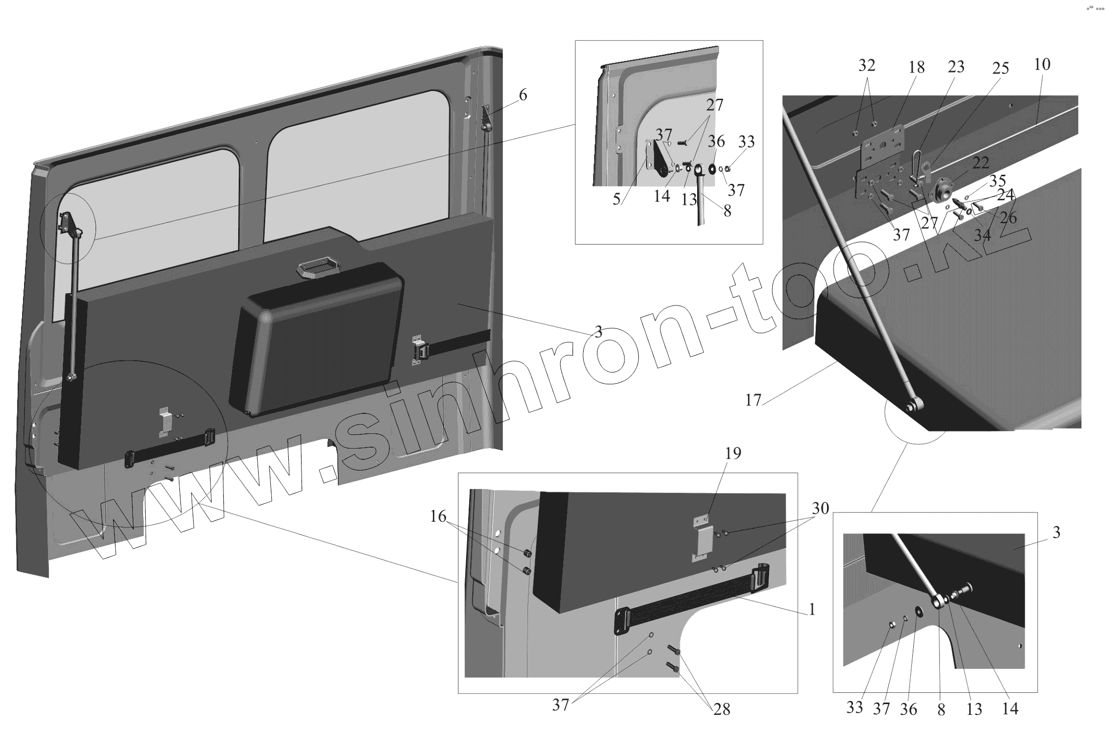 Каталог запасных частей к технике: МАЗ-650119. Установка спального места 6501-8200010