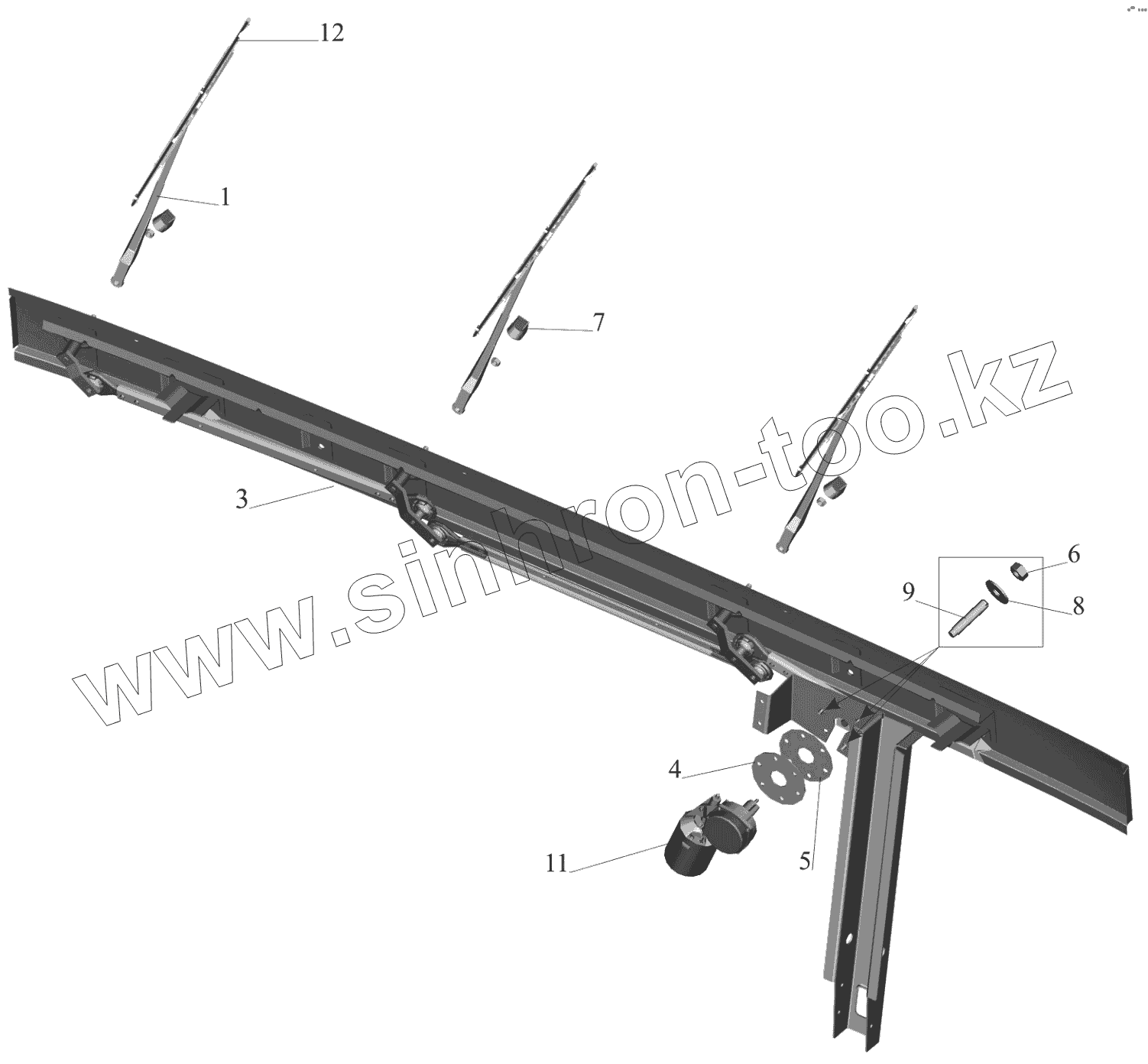 Каталог запасных частей к технике: МАЗ-650119. Установка стеклоочистителя 6430-3700041-001