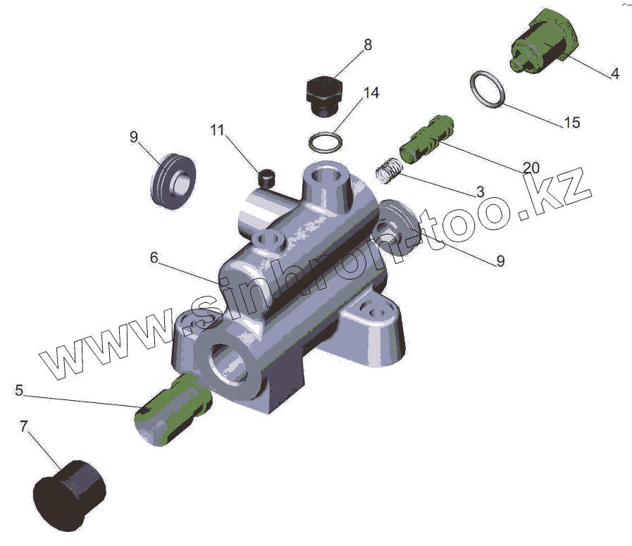 Каталог запасных частей к технике: МАЗ-6501B9. Клапан расхода и давления 5516-8607110