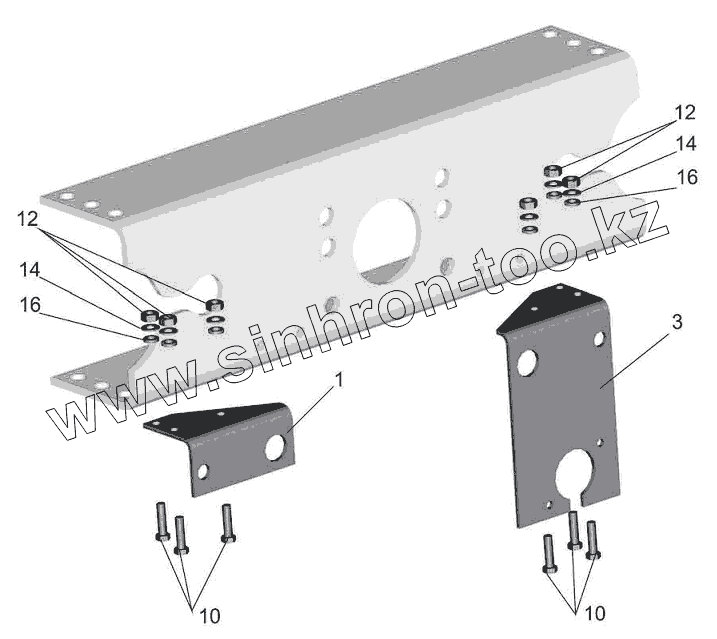 Каталог запасных частей к технике: МАЗ-6501B9. Комплект кронштейнов гидровыводов 6501В9-8609600-000