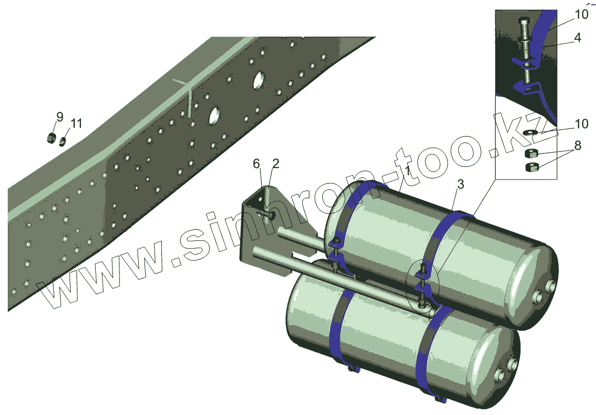 Каталог запасных частей к технике: МАЗ-6501B9. Крепление ресиверов 650119-3513006