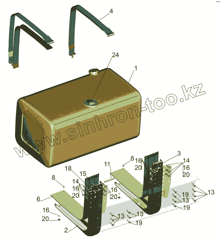 Каталог запасных частей к технике: МАЗ-6501B9. Крепление топливного бака 6501В9-1101002-000