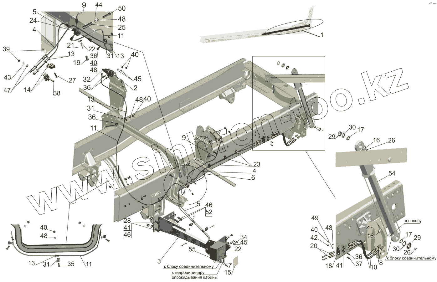 Каталог запасных частей к технике: МАЗ-6501B9. Механизм подъема кабины 6501B9-5000040-011