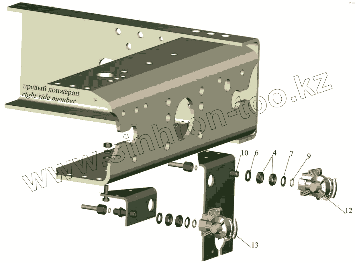 Каталог запасных частей к технике: МАЗ-6501B9. Пневмовывод к прицепу 555105-3521004