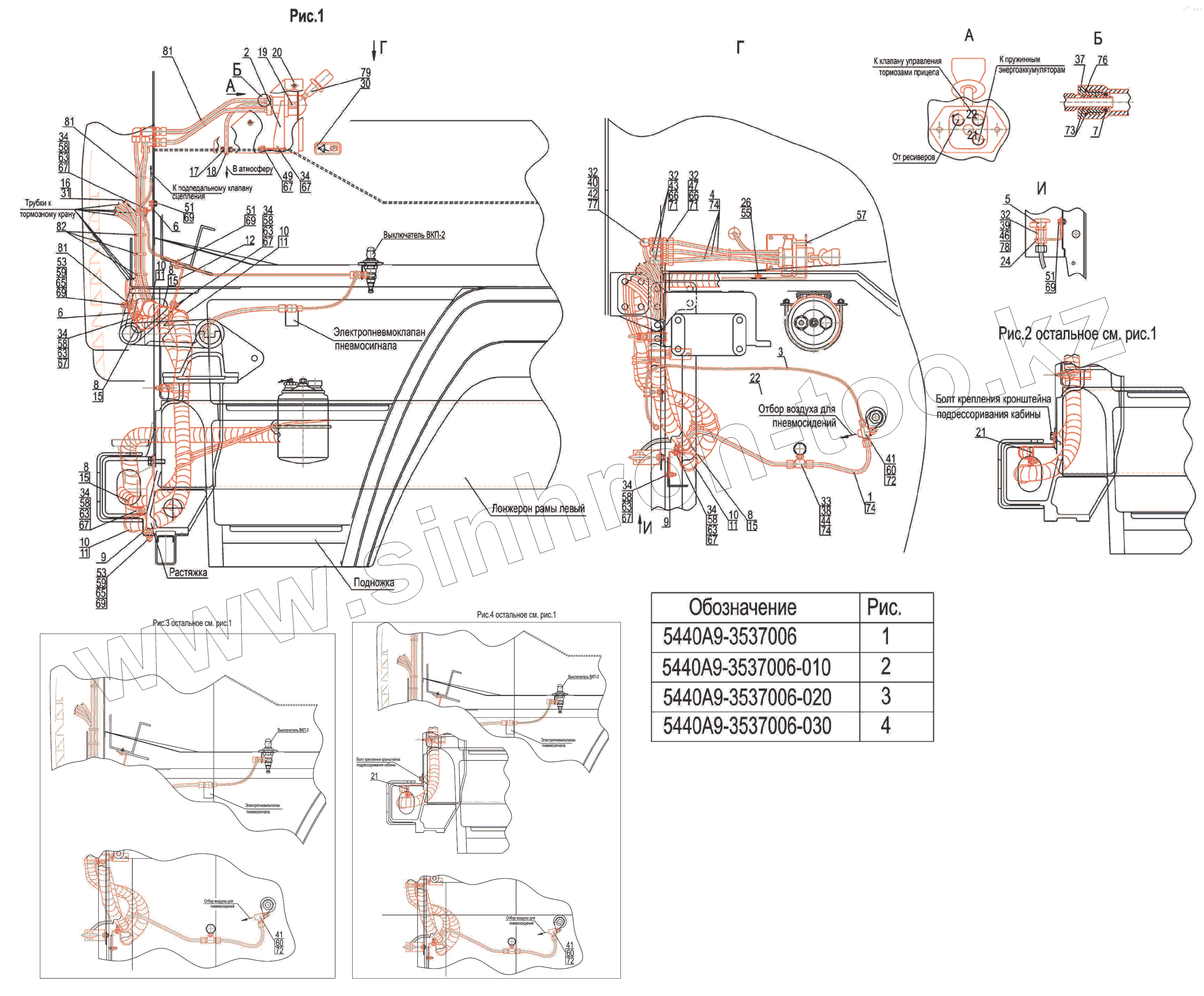 Каталог запасных частей к технике: МАЗ-6501B9. Привод стояночного и моторного тормозов