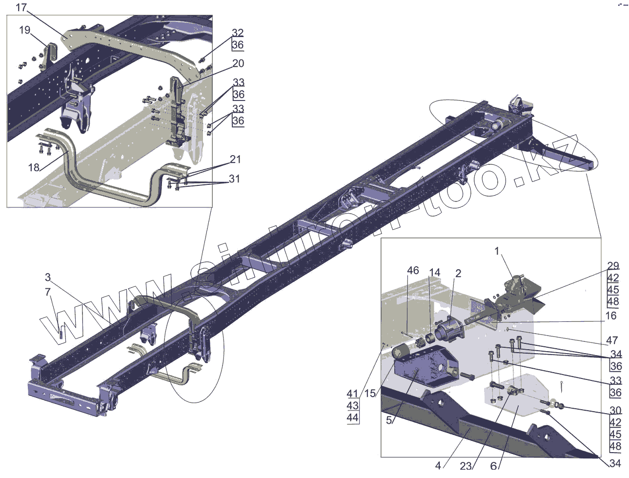 Каталог запасных частей к технике: МАЗ-6501B9. Рама 6501B9-2800010-010