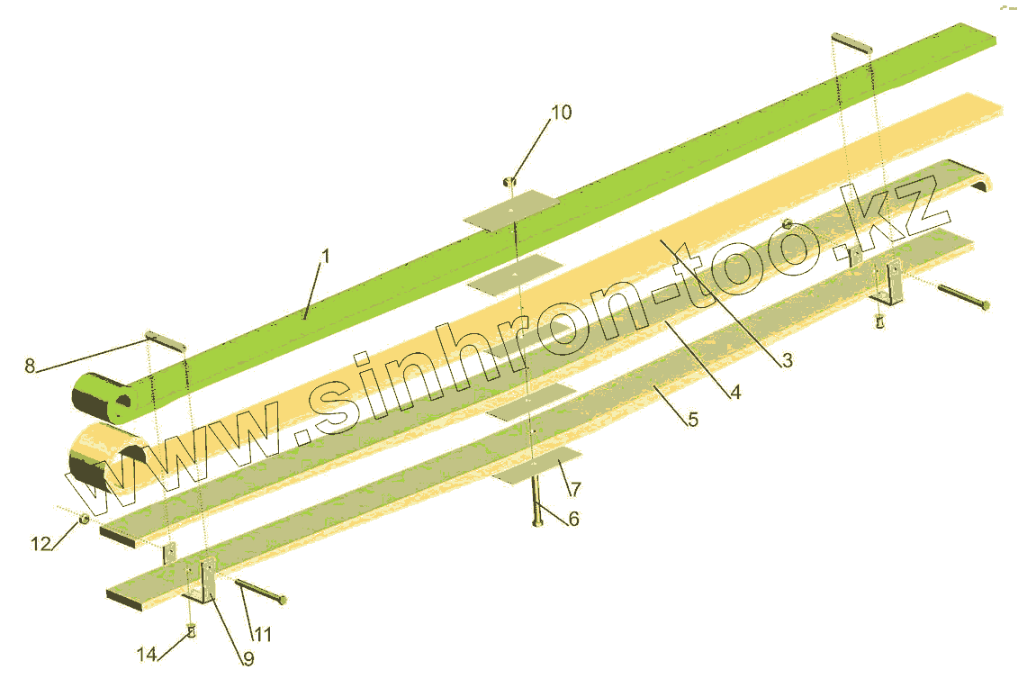 Каталог запасных частей к технике: МАЗ-6501B9. Рессора передняя 6312-2902012-000