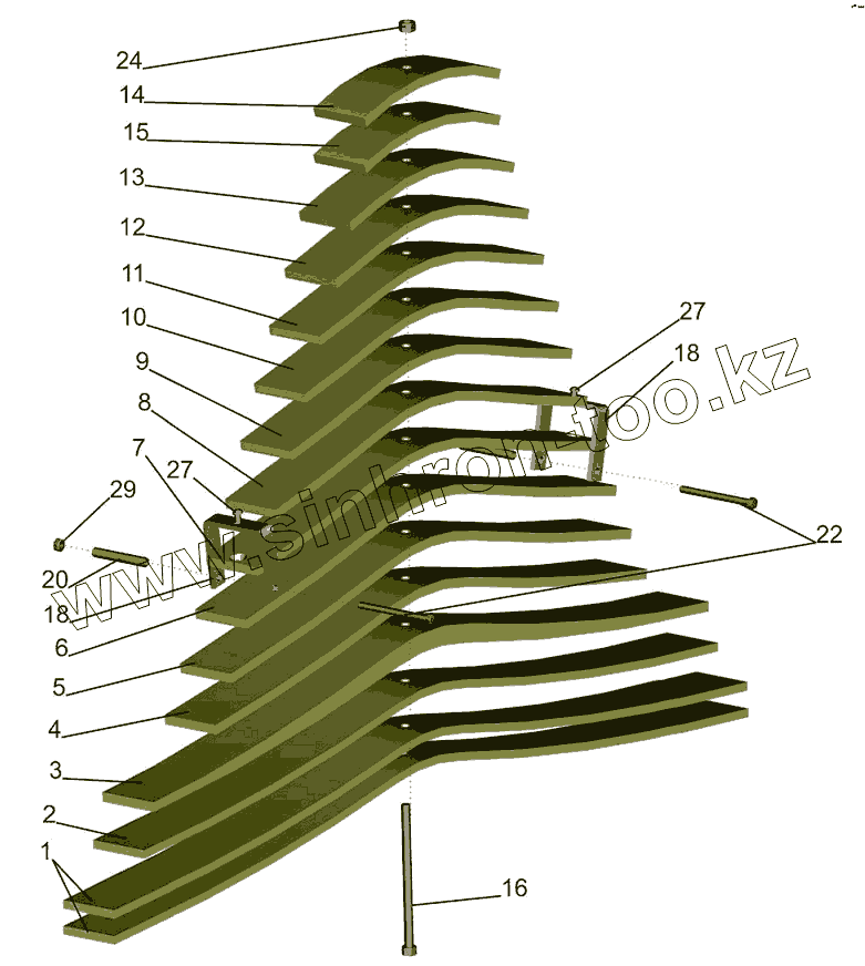 Каталог запасных частей к технике: МАЗ-6501B9. Рессора задняя 55165-2912012-010