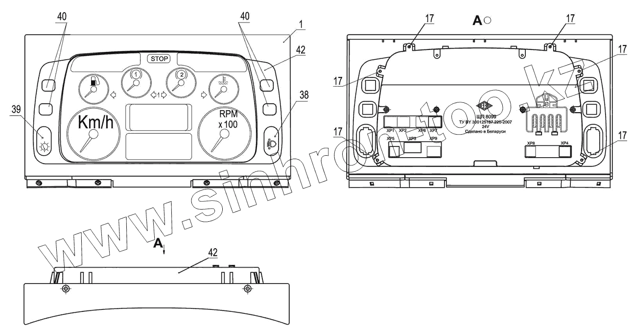 Каталог запасных частей к технике: МАЗ-6501B9. Щиток приборов 5440-3805010-000