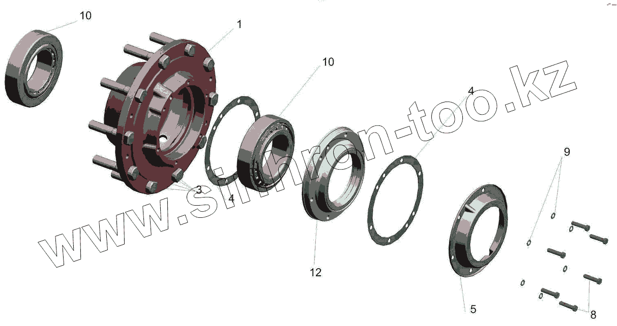 Каталог запасных частей к технике: МАЗ-6501B9. Ступица с крышкой