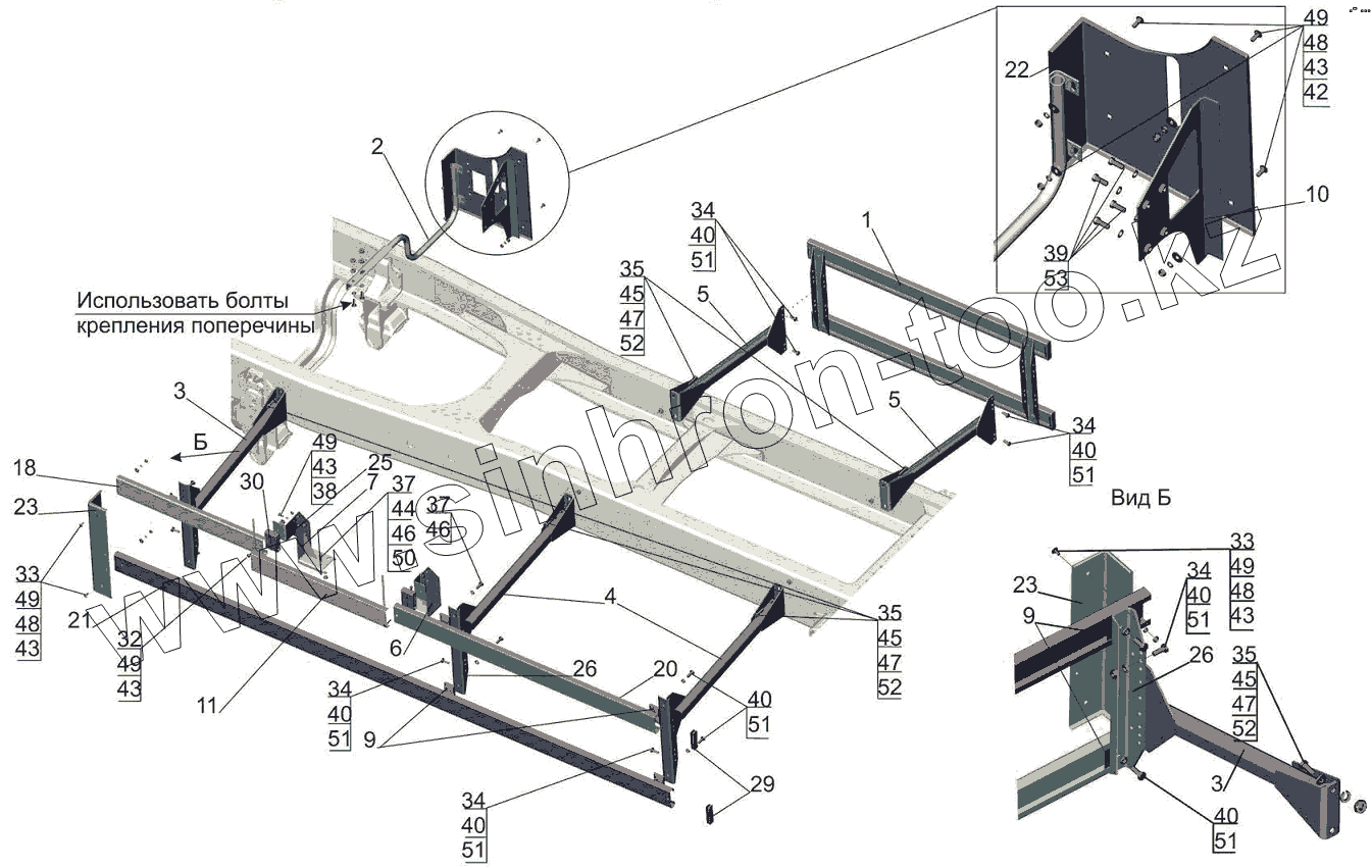Каталог запасных частей к технике: МАЗ-6501B9. Установка бокового ограждения 6501B9-2800040-030