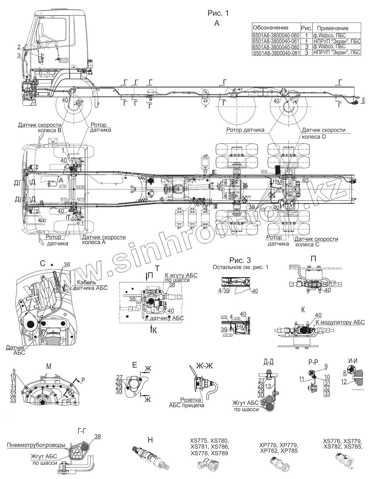 Каталог запасных частей к технике: МАЗ-6501B9. Установка электрооборудования АБС тормозов