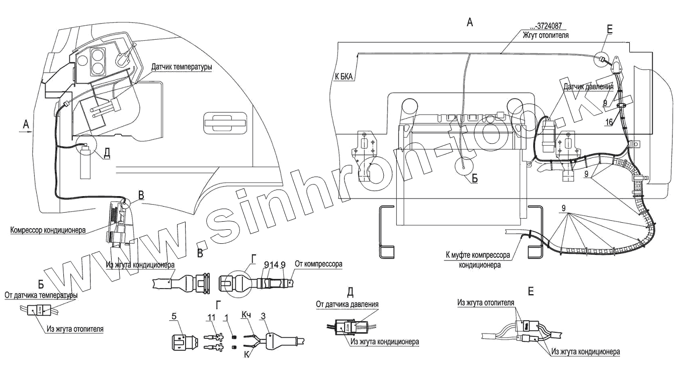 Каталог запасных частей к технике: МАЗ-6501B9. Установка электрооборудования кондиционера 5440A9-3700092