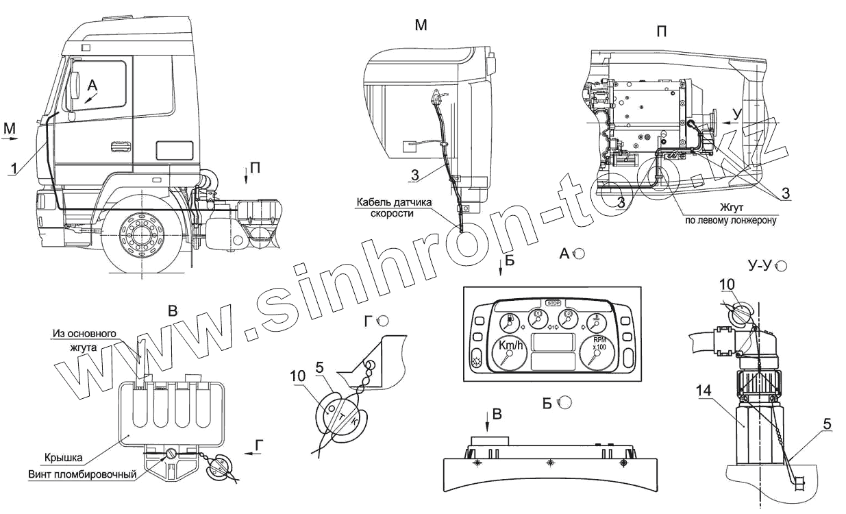 Каталог запасных частей к технике: МАЗ-6501B9. Установка и пломбировка спидометра 6516A9-3800004-020