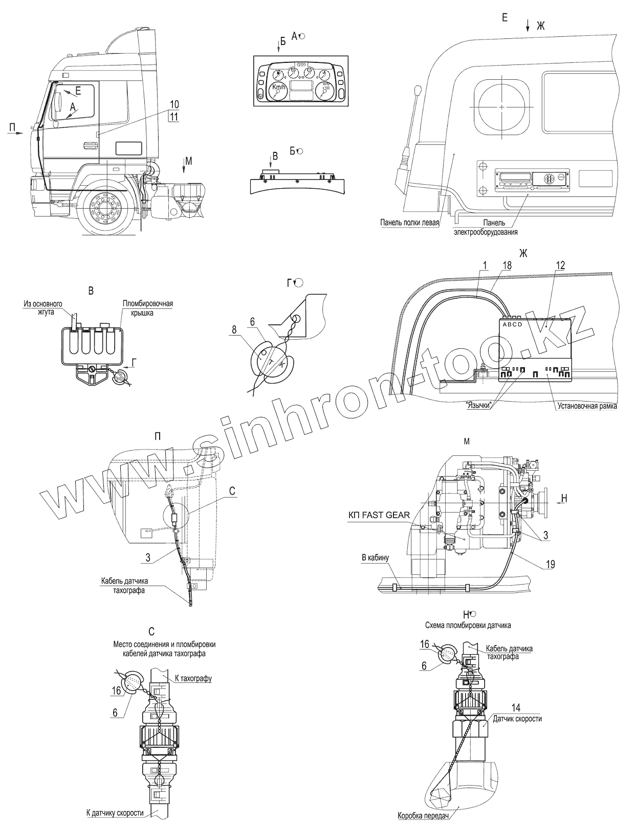Каталог запасных частей к технике: МАЗ-6501B9. Установка и пломбировка тахографа 6516A9-3800005-020