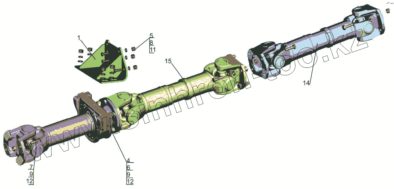 Каталог запасных частей к технике: МАЗ-6501B9. Установка карданных валов 6501B9-2200000-000