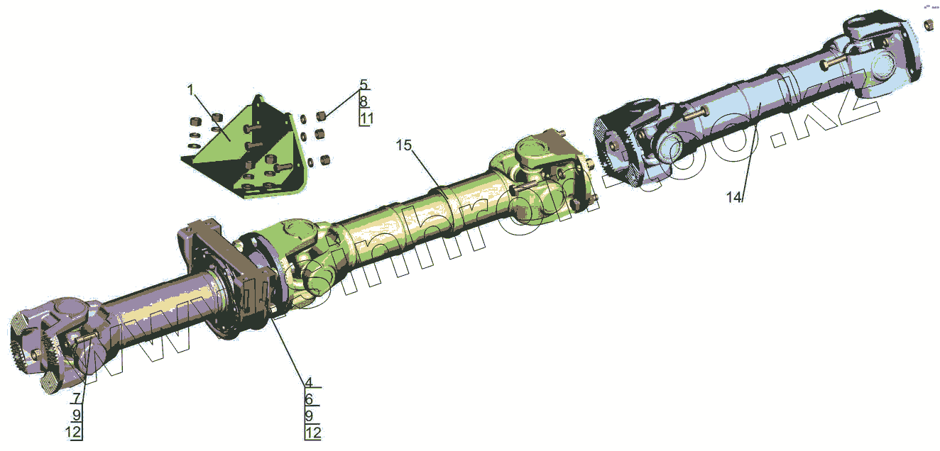 Каталог запасных частей к технике: МАЗ-6501B9. Установка карданных валов 6501B9-2200000-010