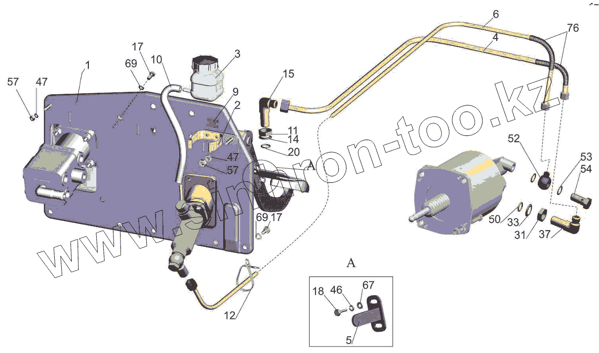 Каталог запасных частей к технике: МАЗ-6501B9. Установка механизма управления сцеплением 544022-1600005-001